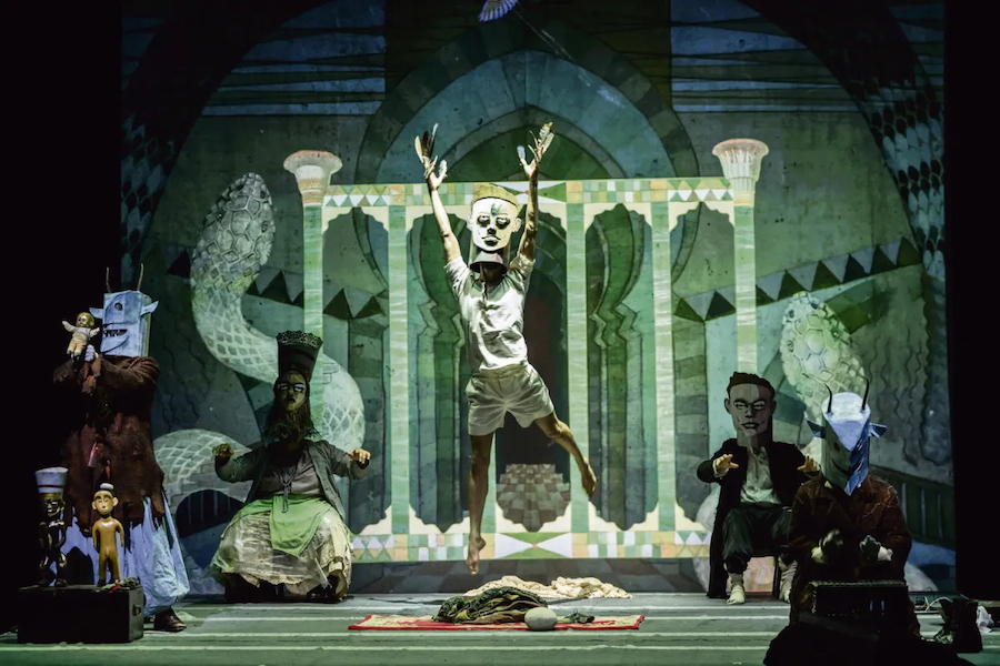 Brett Bailey revisite Faust II en reprenant la narration de Goethe, tout en faisant du Dr Faust un héros contemporain avide de pouvoir. Et pour l’incarner il choisit Elon Musk. Les allusions au suprématisme technologique contemporain vont alors de soi, et le metteur en scène les mêlent en leur donnant une dimension fantastique, surnaturelle, rituelle, nécessaire au mythe. Bailey opère en faisant se succéder des scènes où le récit de Goethe, dit en coulisses, est illustré sur le plateau par des compositions satiriques d’une grande beauté plastique, servie par une troupe de performeurs masqués à l'impeccable jeu huilé. Crescendo, les manières de vaincre pour prendre le pouvoir, depuis la roublardise qui appâte la soif de richesses, l’ivresse incontrôlée de la puissance guerrière, la domination sans limites du monde par la technologie, jusqu’au vertige de la conquête spatiale, guide la dramaturgie.