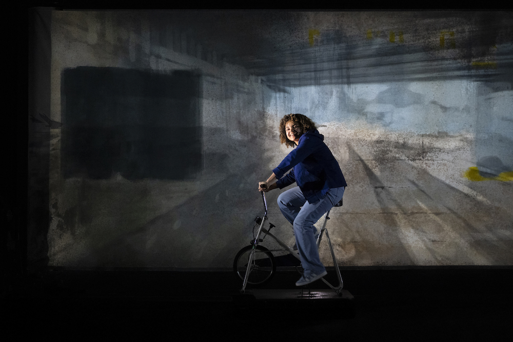 Le propos est servi par un dispositif simple et ingénieux. En fond de scène, un rideau lumineux, actionné par les acteurs, fait défiler des motifs conçus par la scénographe Lisa Navarro qui entretiennent le lien avec ce qui est joué et donne aux scènes successives une dimension lumineuse. La maison, la rue, le rêve… Devant, la puissance suggestive de quelques feuilles mortes que Tuk bouscule sur le chemin de l’école, d’un vélo qui trace une envolée onirique… Ils sont trois interprètes sur scène, à jouer, à chanter, à danser.