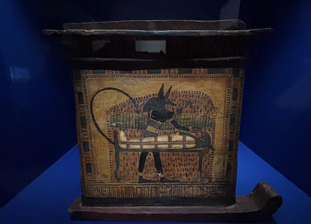 Une rencontre. L’exposition Momies propose « une rencontre avec neuf personnes, qui viennent de culture et de pays différents, en racontant leur vie avant leur mort, et leur vie après leur mort » explique la co-commissaire. La première est un nourrisson, dont la fiche d’identité résultant de recherches soignées, indique qu’il est égyptien, de sexe féminin, a entre six et neuf mois, donne son état de santé, etc. Pour préserver la dignité de chaque corps, un panneau textile tendu sur une vitre prévient de sa présence. Une fiche d’identité revient sur sa vie antérieure, sa culture, le contexte de son rituel funéraire et de son entrée dans la collection. Lorsque les recherches n’ont pas permis de renseigner telle information, cela est précisé. « Une momie est un corps préservé, que ce soit de manière naturelle ou artificielle, de manière intentionnelle ou non, avec une aide humaine ou non » précise la scientifique. Les neufs corps choisis pour l’exposition témoignent de la momification d’un point de vue intentionnel et dans le cadre du rituel funéraire.