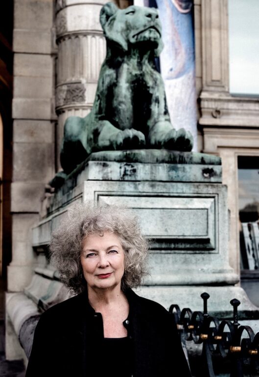 L'artiste Marlene Dumas devant la Porte des Lions du musée du Louvre. © Le Louvre
